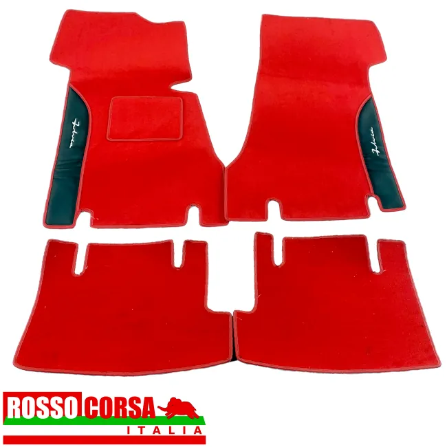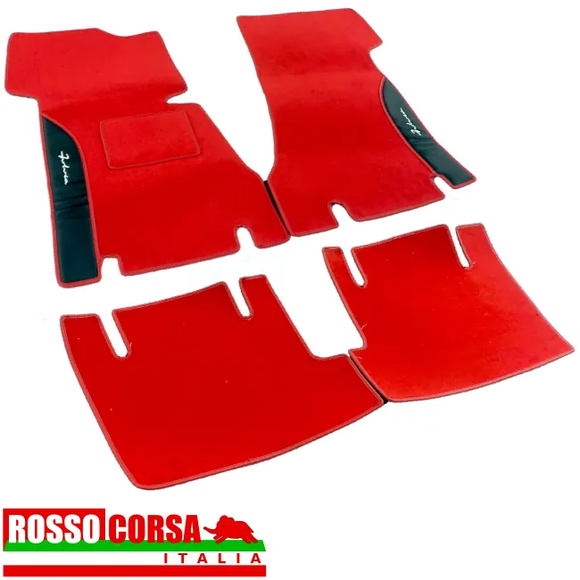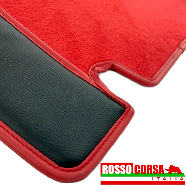 Red overmats for Lancia Fulvia Coupè 1st series, with 4-speed gearbox. Made of velvet with eco-leather binding. Superior quality materials and finishes.