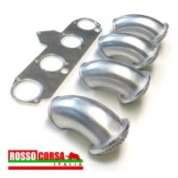 Tromboncini curvi in alluminio, per carburatori Weber DCOE 40 o Dellorto DHLA 40. Forniti con piastra predisposta per il montaggio su Lancia Fulvia. I trombonci sono ruotabili e regolabili a piacere.