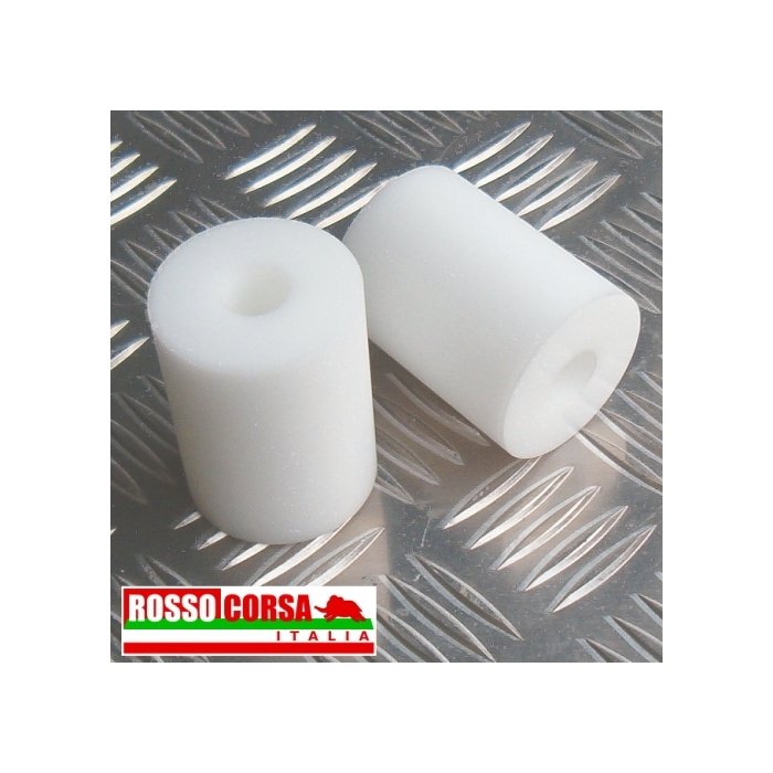Coppia di boccole rigide in Teflon autolubrificante per balestre posteriori Lancia Fulvia. Le boccole da noi fornite vanno a sostituire le boccole in gomma dell’attacco anteriore delle balestre posteriore su tutti i modelli Fulvia della 2°serie