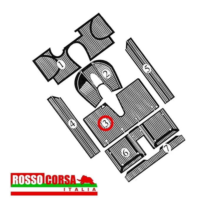 Tappeto in gomma pavimento anteriore Lancia Fulvia Sport 2°serie. Vedi n°3 nell’immagine